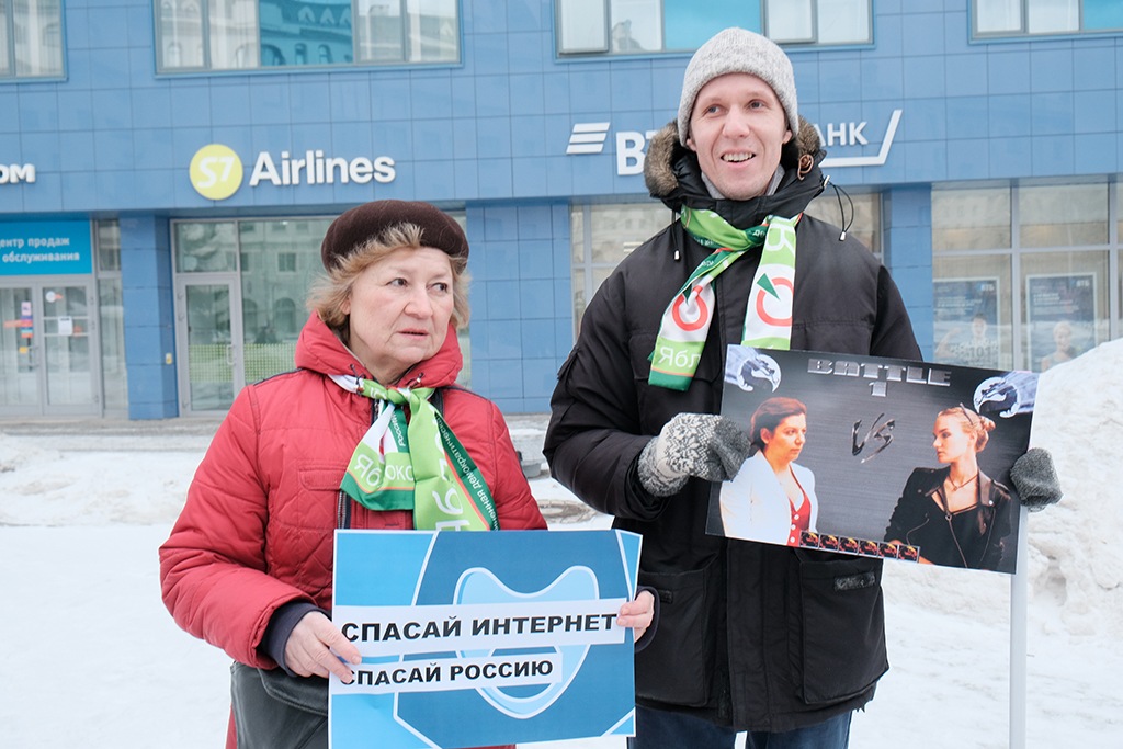 Пикет за свободу интернета прошел в Новосибирске. Участники выступили против закона об изоляции российского сегмента сети и вспомнили красноярского сенатора Андрея Клишаса.