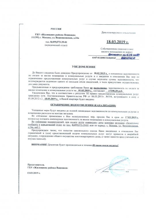 Нужна иная законодательная аргументация действий УК по ограничению водоотведения (канализации)?