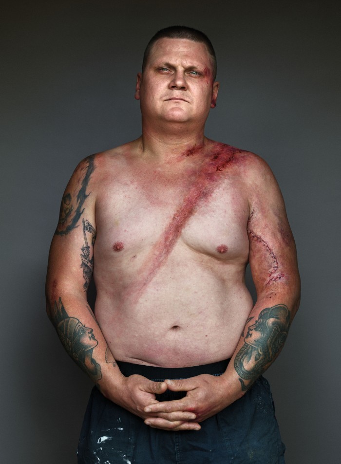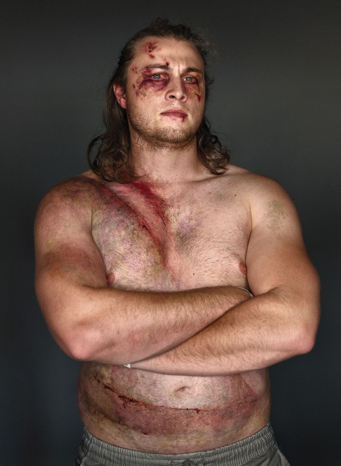 У меченных на фото, быстрее наколки "бросаются" в глаза, чем следы от ремней.