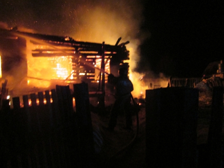 По прибытию к месту вызова первых пожарных подразделений дом уже горел открытым огнём. В результате жилое строение и надворные постройки, общей площадью 108 кв.м, оказались полностью уничтожены. Никто не пострадал. Проверка показала, что причиной пожара стала неисправность дымохода отопительной печи в чердачном помещении дома.