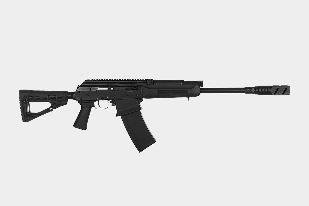 По документам «Сайга» проходит как охотничье ружье, но выглядит как автомат. Стоит 75 тысяч вместе с аксессуарами: креплением для прицелов, переводчиком огня и улучшенным ударно-спусковым механизмом.