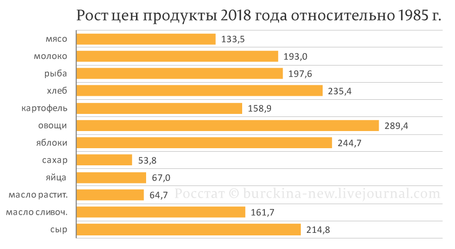 Вроде не так много, как кажется, но это без учета падения качества из-за отмены ГОСТов, когда сейчас вместо масла может оказаться маргарин, а вместо колбасы соевый субстрат с добавлением отходов убоя скота и птицы.