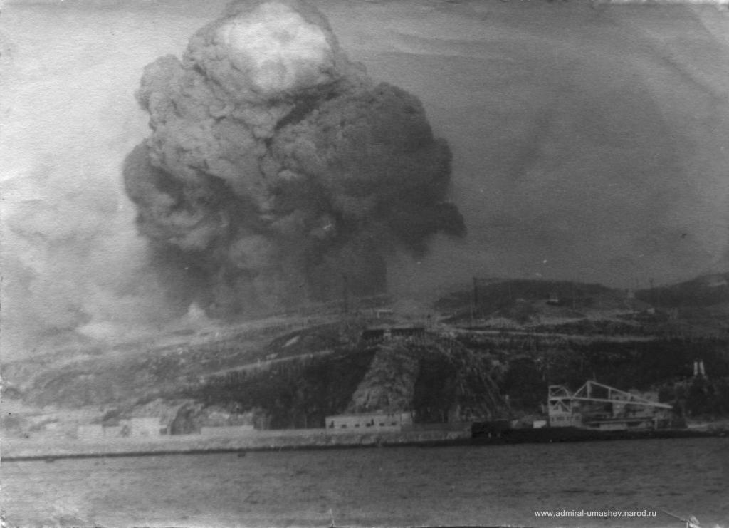 У 17-го причала стояла атомная подводная лодка под погрузкой, и в момент первого взрыва ядерная ракета была в стадии погрузки в шахту (с ядерной боеголовкой лежала на причале). Погрузка была осуществлена в кратчайшее время. Еще один подводный атомоход, который при взрыве стоял у самой базы Окольной, отведен буксирами в море.
