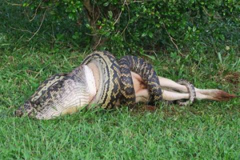 Женщина попыталась помочь огромному питону проглотить кенгуру