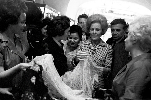 Супруга Президента США Патриция Никсон во время посещения Государственного универсального магазина. 1972 год.