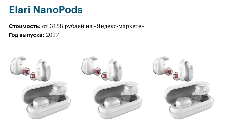 Дают отличный звук, кейса с наушниками хватает более чем на день при полной зарядке, которая длится всего лишь три часа. Удобная форма в виде капелек обеспечивает полную шумоизоляцию. Также в них удобно заниматься спортом — благодаря креплениям они не выпадают при беге и других упражнениях.