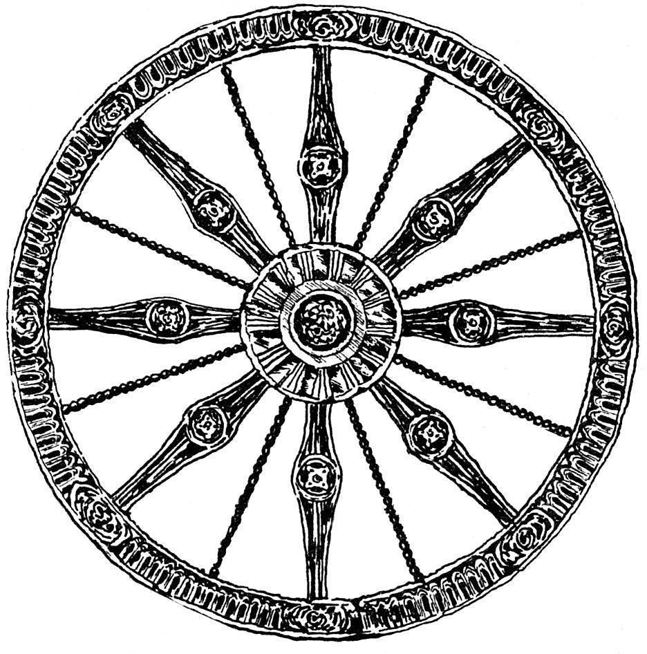 Значение: Колесо – символ солнца, символ космической энергии. Почти во всех языческих культах колесо являлось атрибутом солнечных богов, оно символизировало жизненный цикл, постоянное перерождение и обновление.