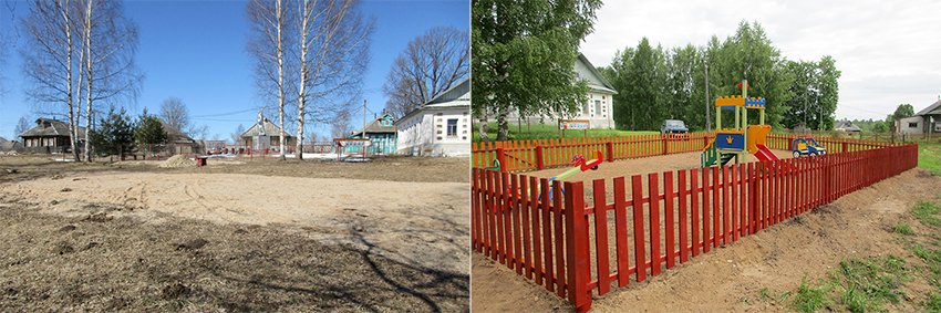 В поселке Прозорово был пустырь. Дети там воздушного змея запускали. Жители подали заявку на детскую площадку. Сосед-тракторист разровнял буераки и привез песку из карьера. Другой сосед, у которого пилорама, соорудил штакетник. Красили всем поселком. А детские аттракционы привезли из Ярославля по программе "Решаем вместе".
