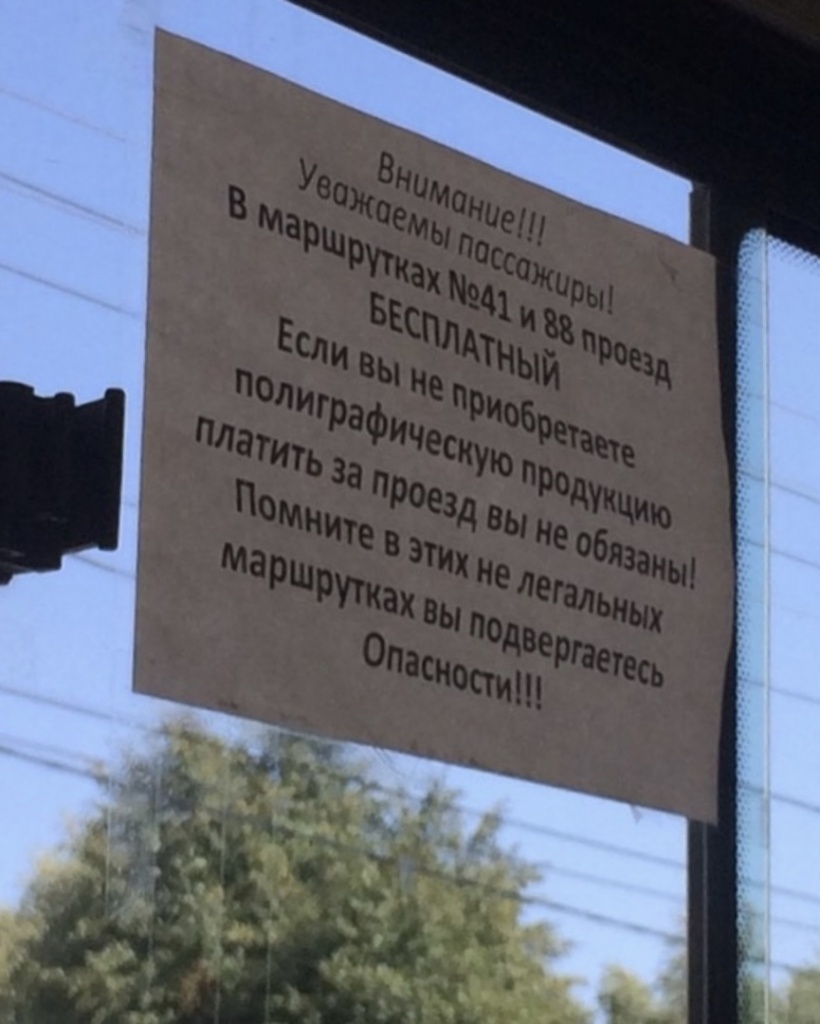 Теперь же как неравнодушные граждане, так и водители легальных маршруток всячески предупреждают своих сограждан о том, что ездить на 88 и 41 микроавтобусах можно совершенно бесплатно, если вы не хотите купить у них календарь.