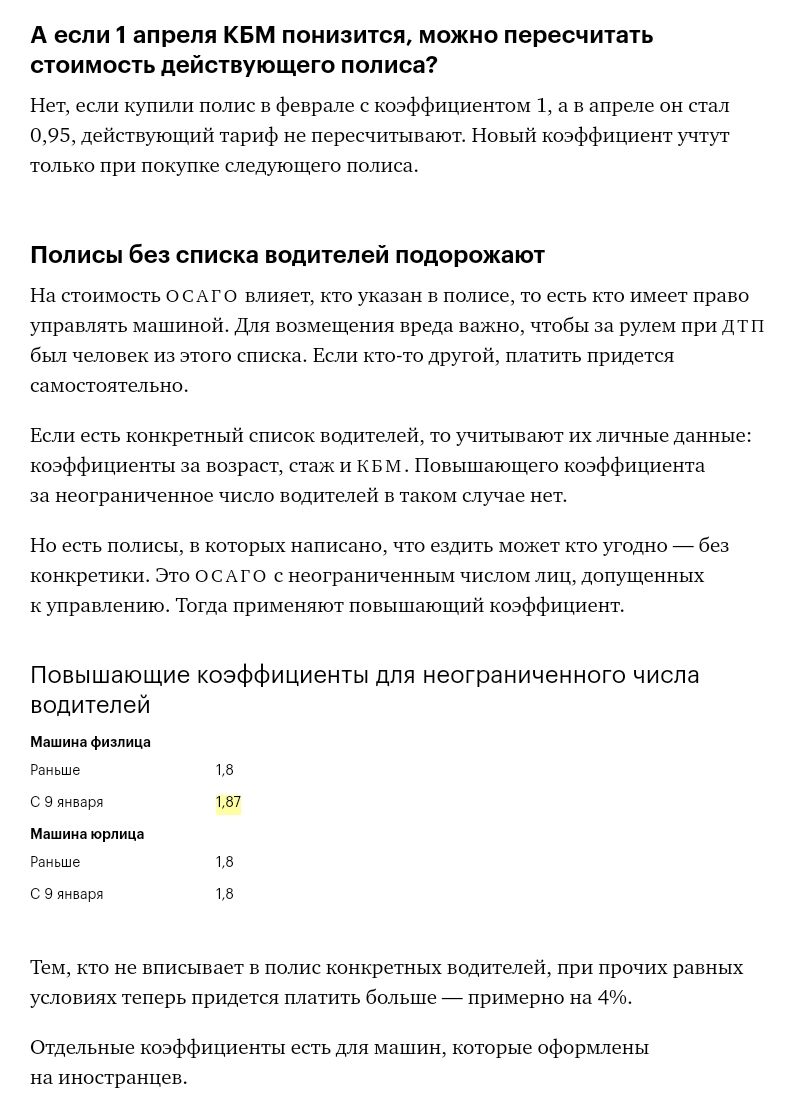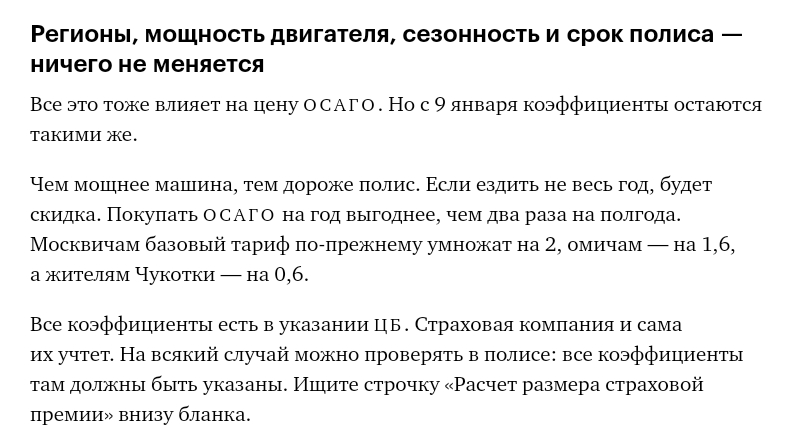 Так вот: с 9 января тарифы и коэффициенты изменились. Если планируете покупать полис, ориентируйтесь на новые тарифы и коэффициенты.