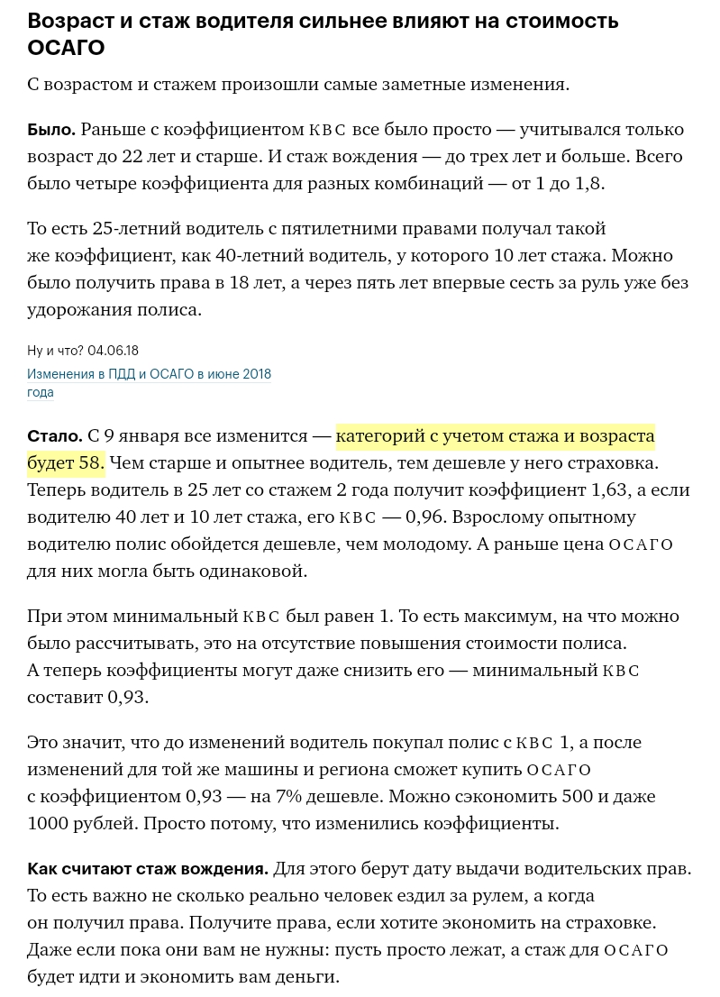 В целом система стала более справедливой: дисциплинированные водители будут платить меньше, неаккуратные — больше. Стало больше градаций по стажу и возрасту водителя. Многие сэкономят, хотя раньше не могли.