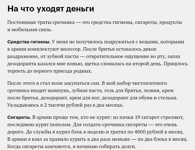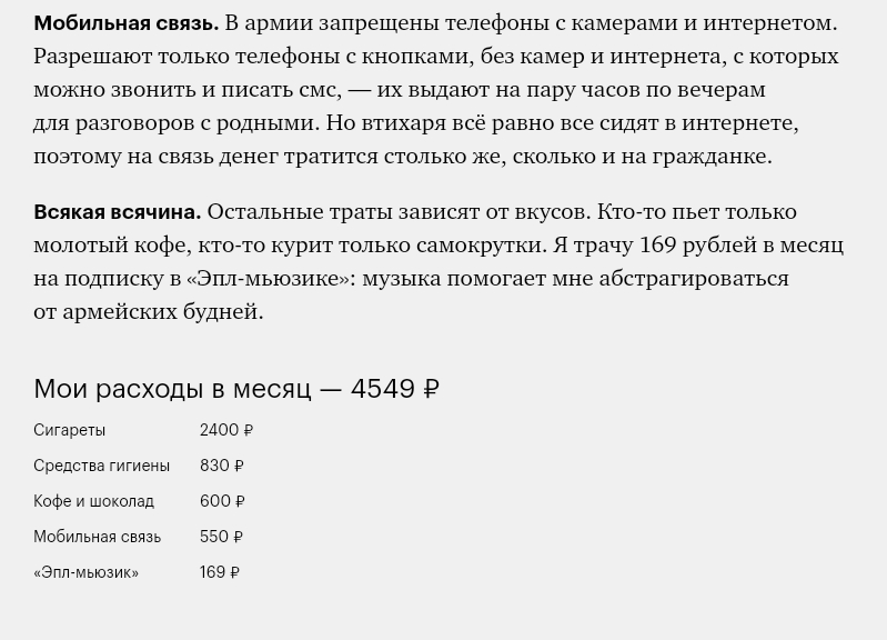 Родители — главный источник дохода. Будем откровенны: когда парня в 18 лет берут за шкирку и отправляют в армию, у него вряд ли есть другой.