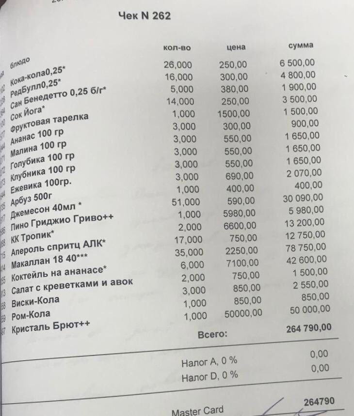 Они потратили 265 тысяч в "Кофемании" и 120 тысяч в клубе "Эгоист". Трансляция велась рядом СМИ, можете погуглить.