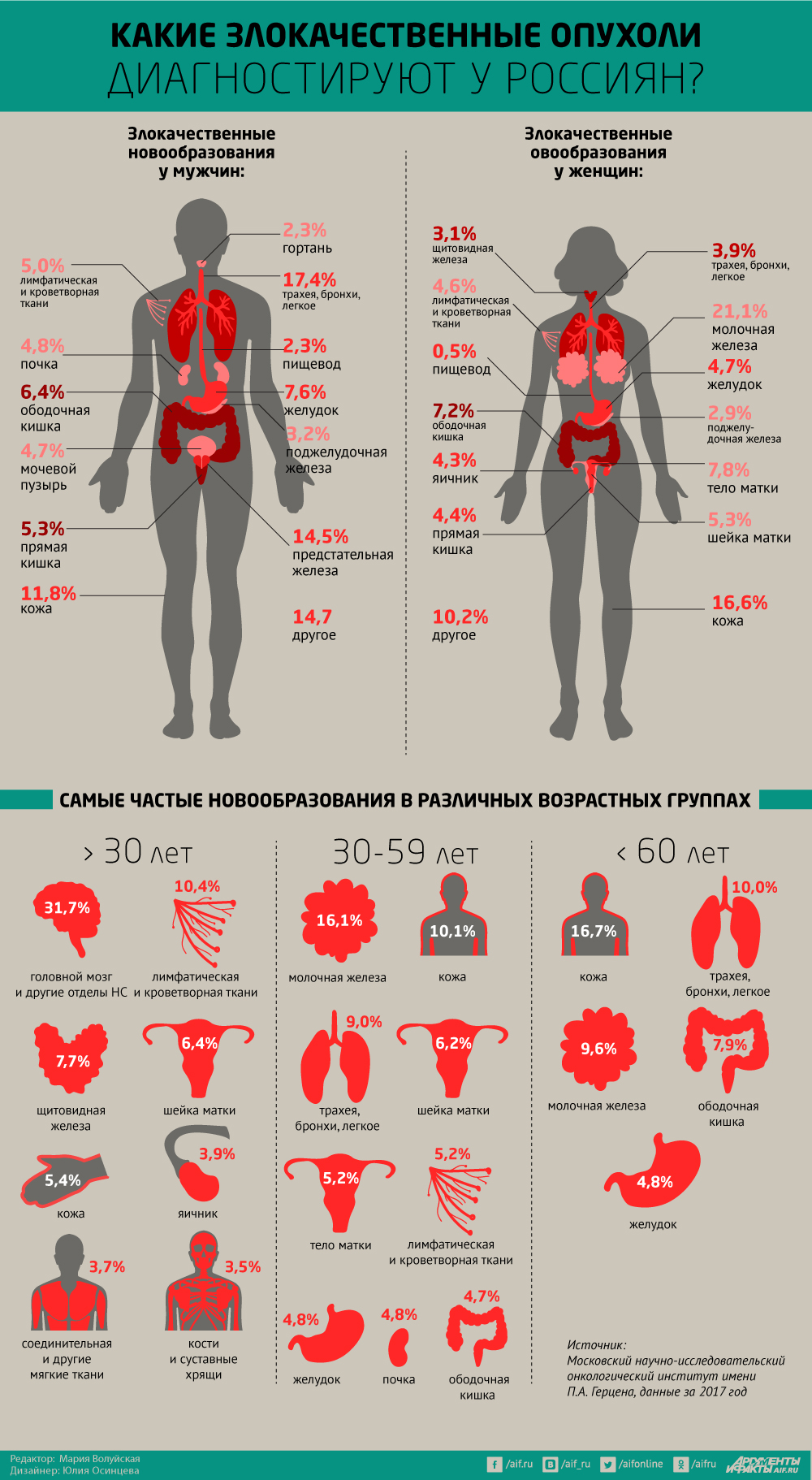 Какие виды онкологических заболеваний чаще всего диагностируют у россиян? Информационный график