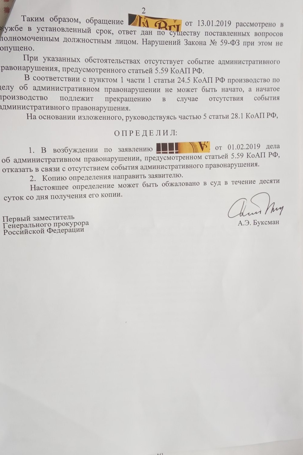 не страшно - тот кто составлял определение об отказе в возбуждении дела об административном правонарушении, то же скорей всего не юрист, и врят ли это был сам Буксман. У нас ведь даже министр обороны не военный, скрепы понимаешь.