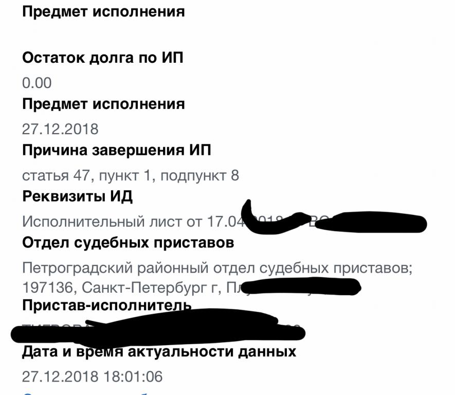 + сегодня ночью, ч наконец-то нашла через ГОСуслуги причину завершения. И вообще ничего уже не понимаю! Кто виноват? И что делать вообще? Правы приставы? И никуда не следует жаловаться, дабы не оказаться... тли же что-то не так? И если все таки я права-куда жаловаться с доказательствами? (При условии, что начальник управления защищает своих приставлял-это понятное дело и это нормально. И как мне получить эту справку, что бы предьявить в суде, что он действительно был должником, может и не в 41 тысячу, может хоть в 10 рублей, но все же-по факту он им был?!