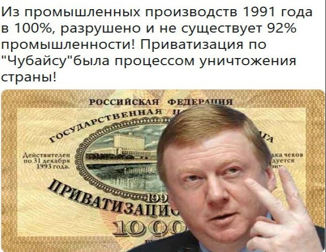 По словам У. Черчилля, И.В. Сталин принял Россию с сохой, а оставил с атомной бомбой. В отличие от Иосифа Виссарионовича, все идет к тому, что В.В. Путин, как принял Россию с Чубайсом, так с ним же и оставит.