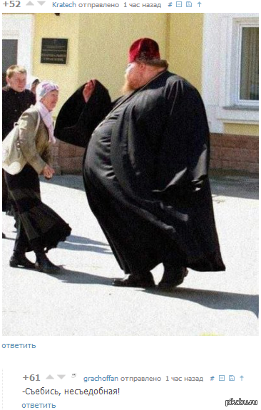 Просто священнику не нравятся стройные люди, на их фоне попы с ряхами что в дверь не проходят и животами до колен плохо смотрятся.