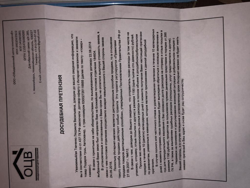 Не забрали посылку на почте из Интернет магазина