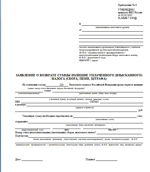 Как только сумма налогового вычета подтвердилась, необходимо заполнить заявление на возврат денежных средств.