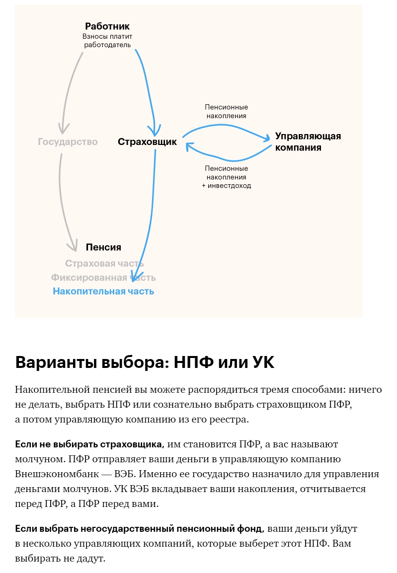 С 2014 года взносы от работодателей идут только на страховую пенсию, но пенсионные накопления все равно растут, потому что вы их инвестируете. Либо их инвестируют за вас.