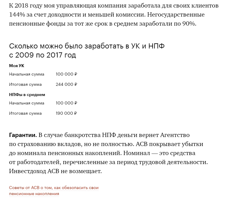 Статья про доходность УК и НПФ — на сайте «Коммерсанта»