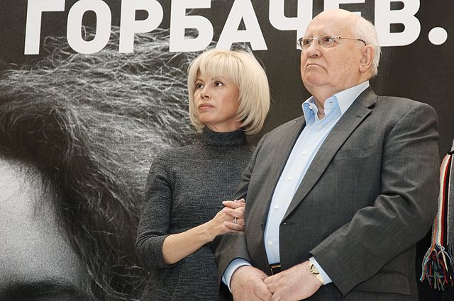 Дочь экс-президента СССР Михаила Горбачева Ирина Вирганская с супругом на открытии выставки «Михаил Горбачев. Perestroika». 2011 г