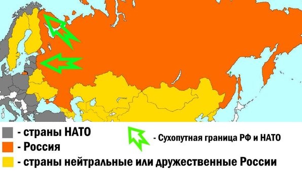 Давайте посмотрим на карту. Мы видим, что современная Россия имеет минимум реальных точек соприкосновения со странами НАТО.