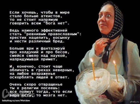 Я довольно долго живу на свете, чтобы сложить обовсем свое мнение. У меня есть масса примеров подлых и двурушнических поступков ханжей в рясах. Так что действительно переубеждать меня не стоит, все зря. И я всегда помню хорошую пословицу, когда-то давно услышанную от отца: днем монашат, ночью ералашат. Все служащие в храмах - это обычные люди на обычной казалось бы должности. Хотя если вдуматься - уже одно это обычное служение они превратили для себя в необычайно легкий вид наживы. И это тоже на мой взгляд одно из величайших махинаций. А люди идут к ним только потому, что большинству свойственно взваливать свои проблемы и беды на других, вот и бегут в церковь молятся, каются, открывают свои души рясникам в надежде на помощь. И день за днем, год за годом все повторяют и не замечают, что в жизни их ничего не менгяется. Но если что-то получилось у кого-то где-то по рассказам кого-то, то приписывают чудо этим ритуалам, а не врачам, допустим. И так во всем. Так что много можно говорить и мне, и Вам, но все равно мы будем по разные стороны.