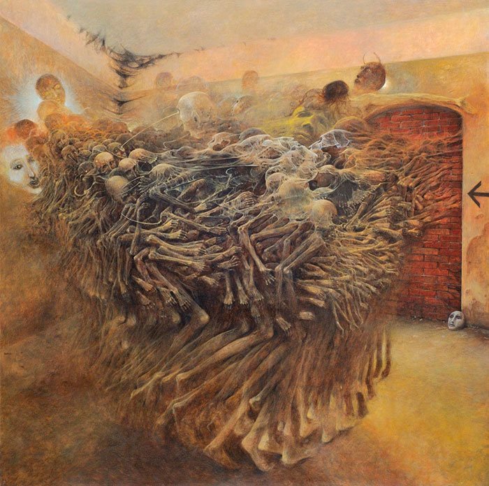 11. Картина Здислава Бексински: мясорубка из скелетов.