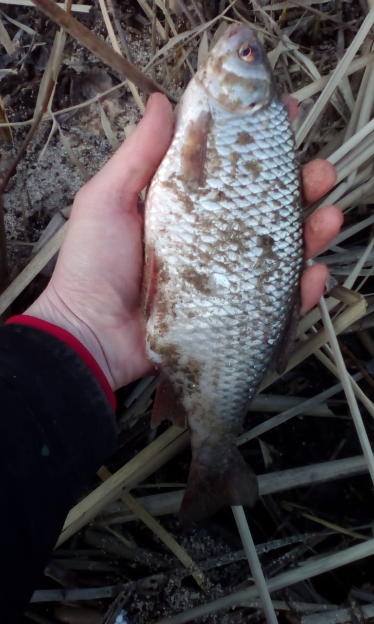 Рыбалка на частном пруду в сильный ветер. Пойман первый карп в этом сезоне.