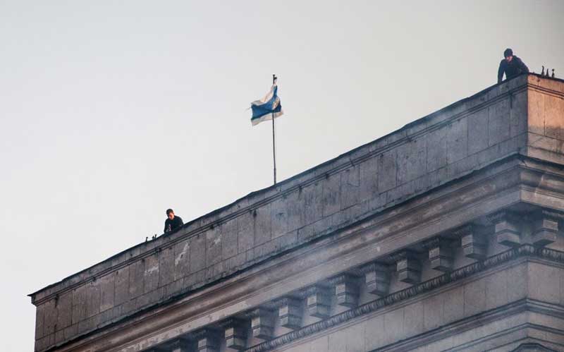 Кто мог пробраться на крышу административного здания федерального значения? Наверно те, кто заранее получил ключи от замков, запирающих стальные решётки, ведущие к дверям на крышу.