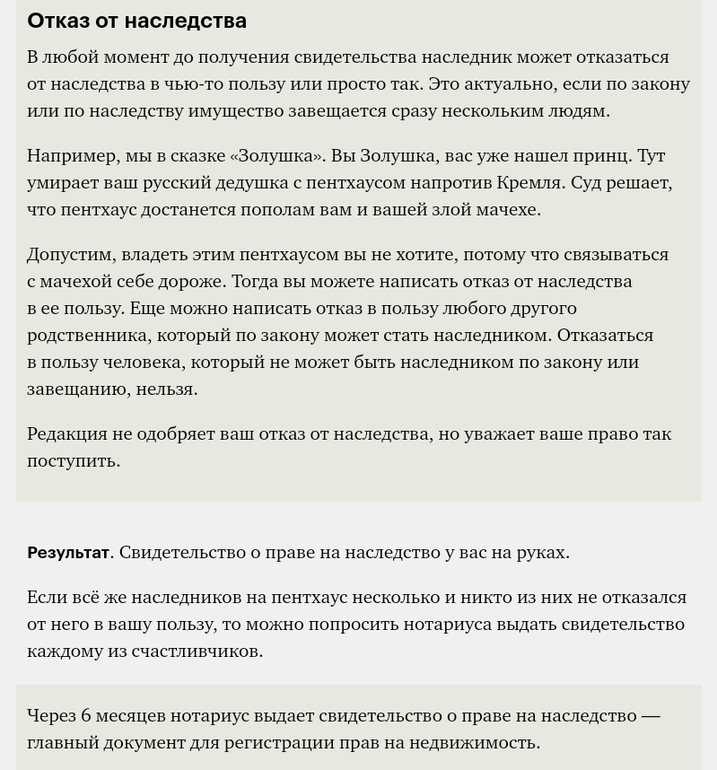 Не дано вы совершенно случайно) узнали, что вам в наследство достался домик в Вологде. Нет, квартира в Питере. Нет! Пентхаус с видом на Кремль! Ладно пусть вам достался пентхаус от вашего покойного деда.