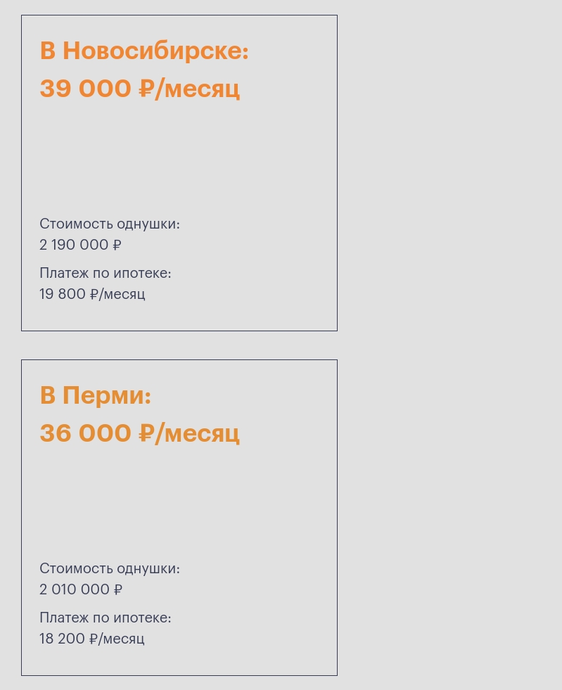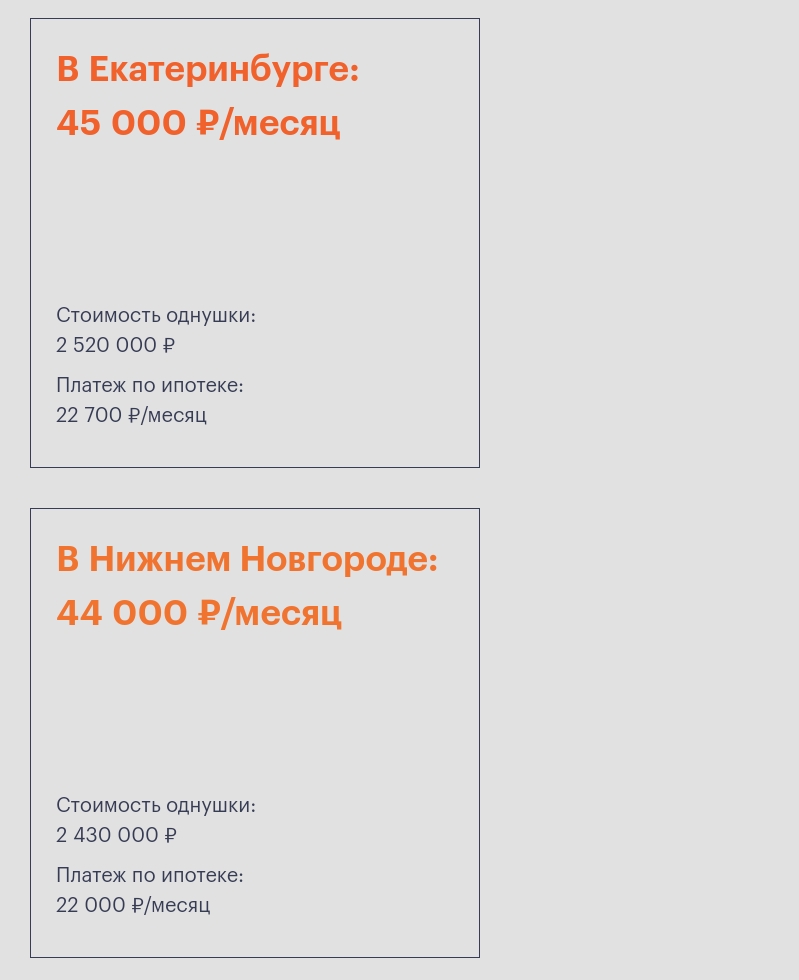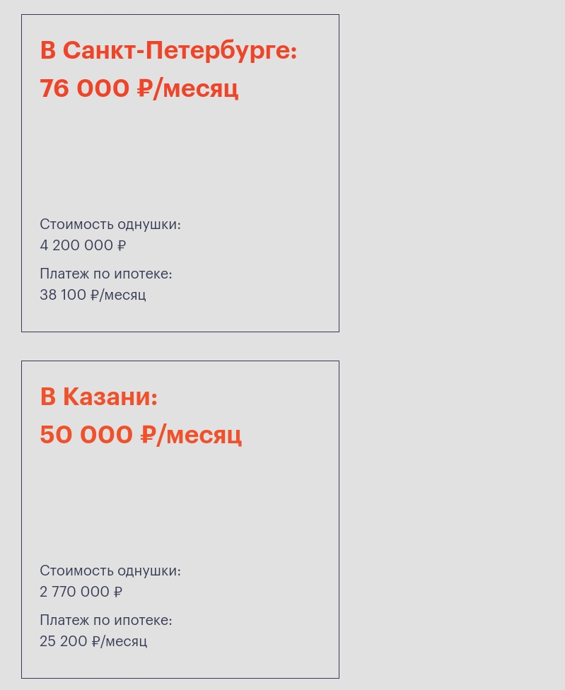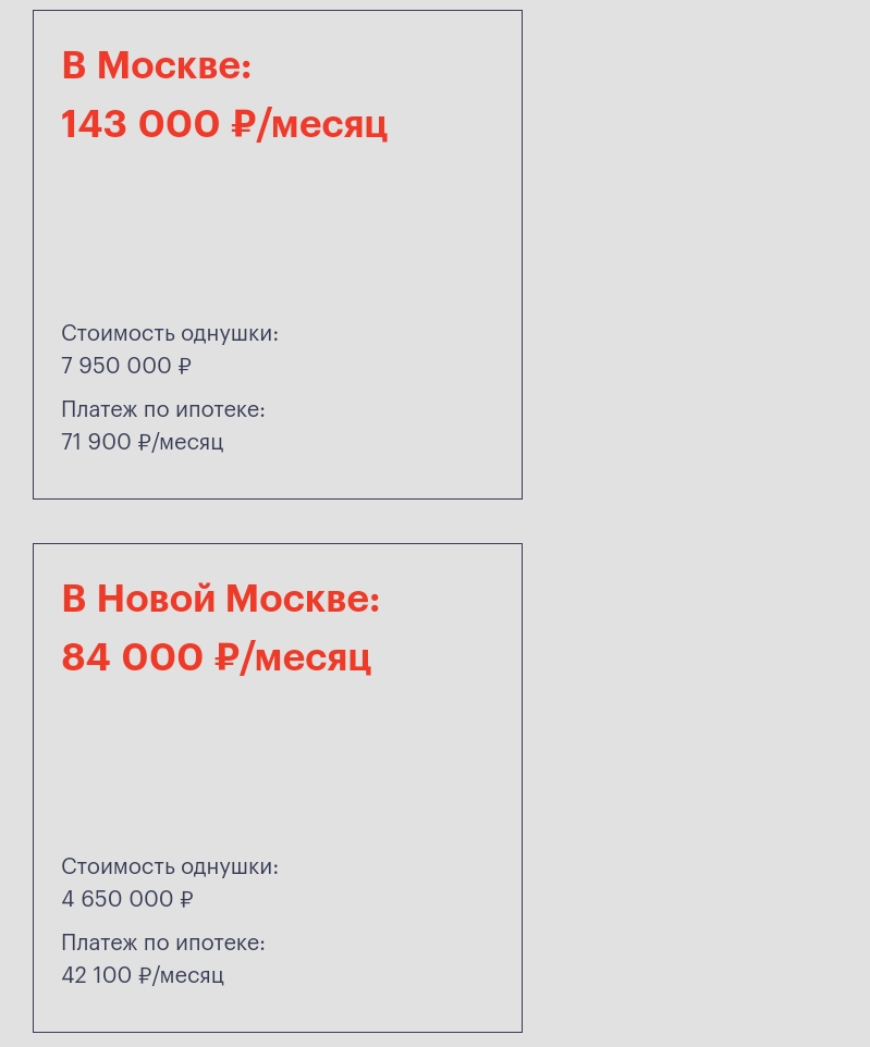 Чтобы все посчитать, я взял с «Домофонда» стоимость новых квартир на которых цена на февраль 2019 и отнял из нее 10% ,это деньги на первоначальный взнос. По данным ЦБ, средняя ставка и срок ипотеки в январе 2019 года — 9,66% и 16 лет. Будем считать, семья платит по кредиту 50% своего дохода, ну а на вторую половину дохода оставит себе на жизнь. Вот сколько нужно зарабатывать, чтобы купить однушку хотя-бы в новостройке.