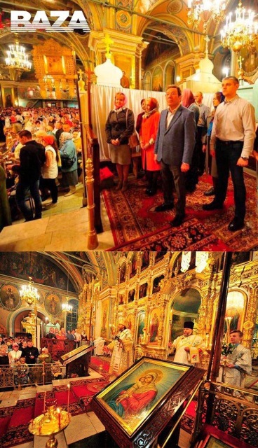 Главнюки московские все прут в церковь на святые праздники, вот и периферийная шушера тоже лезет, да еще о с видеосъемкой, чтобы отчитаться...