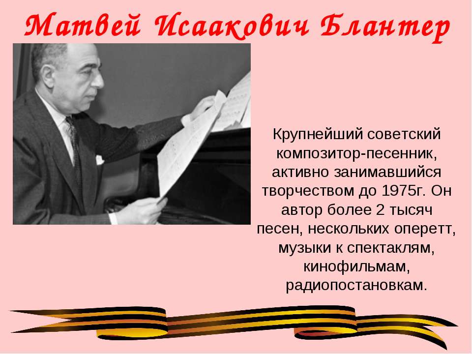 Автор слов Исаковский М.В., композитор Блантер М.И.
