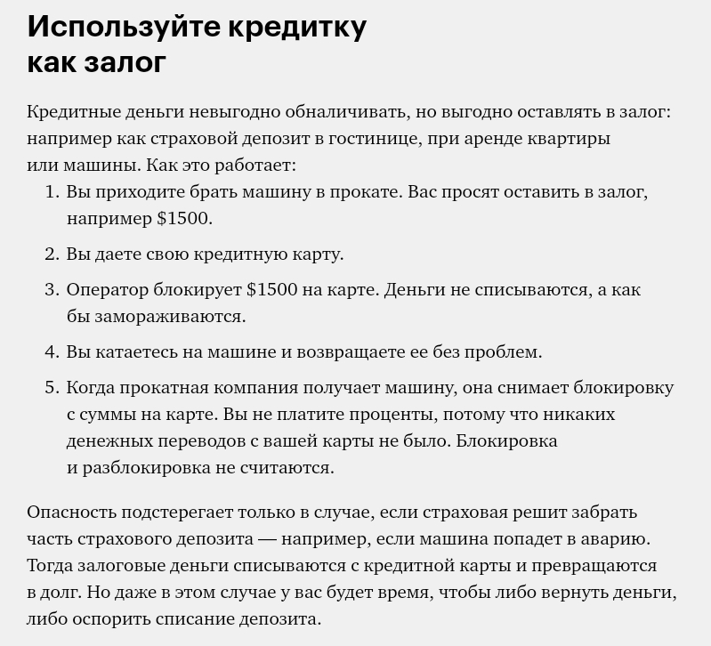 в) Не снимать с кредитной карты наличные.