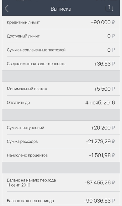 Каждые месяц в определенное число банк присылает Вам уведомление, где написано, сколько вы ему должны. Это выписка. Ее можно увидеть в интернет-банке или мобильном приложении: