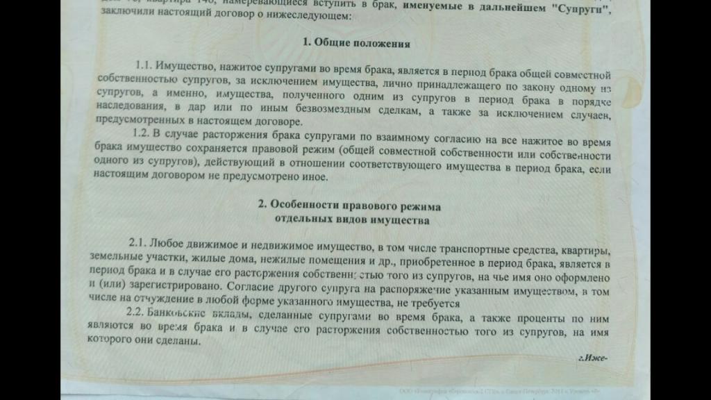 Так в этом и состоит абсурдность условий договора. В разделе первом, говорится, что все имущество, это совместная собственность супругов и до брака и после его расторжения, а в разделе втором, уже говорится о том, что ВСЁ имущество-движимое и недвижимое, это раздельная собственность..