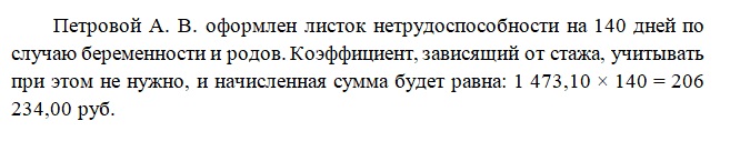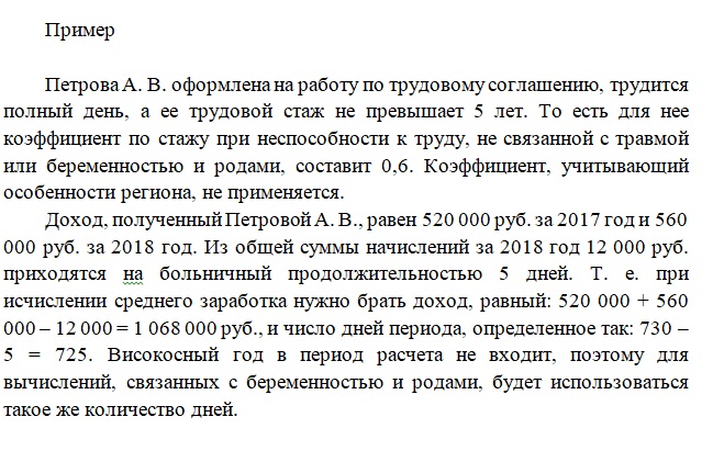 Количества дней в периоде, который учитывается при расчете среднего дневного заработка. Отличным от общеустановленного значения (730 дней, п. 3 ст. 14 закона № 255-ФЗ) оно окажется при исчислении платежа по листку нетрудоспособности, выданному по беременности и родам, для которого число дней в году надо брать по факту и с учетом возможности смещения лет, выбираемых в качестве расчетных (п. 3.1 ст. 14 закона № 255-ФЗ). Это может быть и 731, и 732 дня (письмо ФСС РФ от 03.03.2017 № 02-08-01/22-04-1049 л).