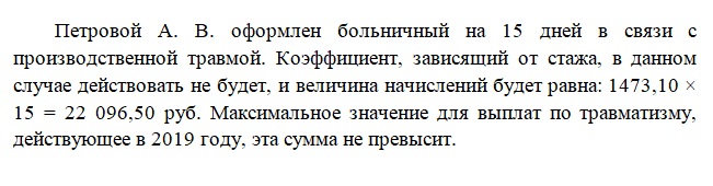 Максимально возможного размера выплачиваемой суммы. Для всех ситуаций, кроме травм, она зависит от предельных объемов доходов, облагаемых взносами в каждом году из расчетного периода. В отношении платежей по травме максимум платежа установлен в размере 4-кратной ежемесячной страховой выплаты (п. 2 ст. 9 закона № 125-ФЗ).