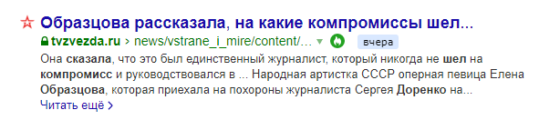 Оперная певица Елена Образцова якобы «отметила», что "Доренко никогда не шел на компромиссы и руководствовался в своей профессиональной деятельности только правдой. Низкий ему поклон и вечная память", - передал телеканал "Звезда"