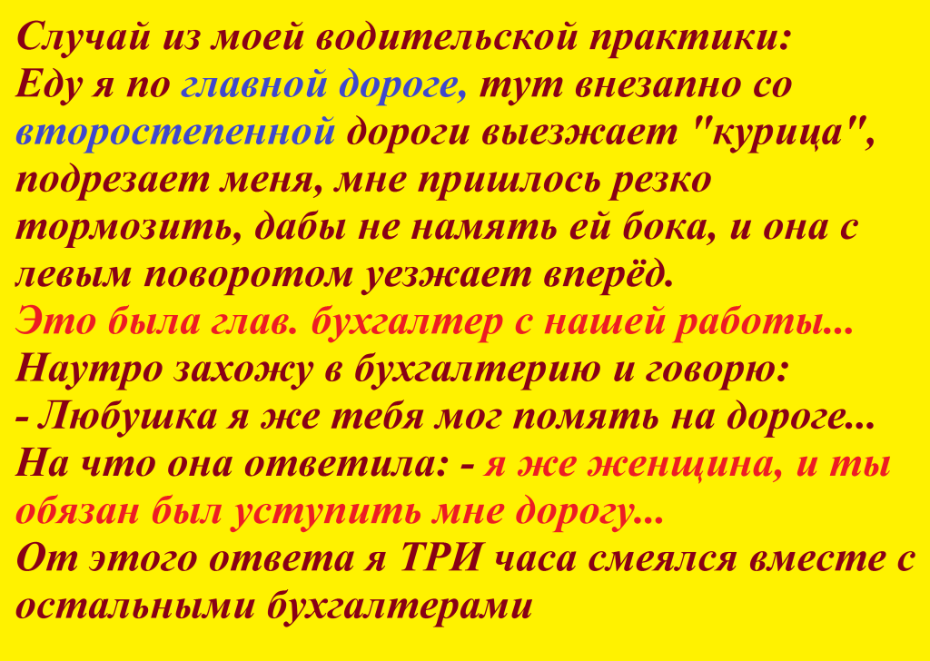 "Юрист", ссылку на пункт ПДД и федеральные законы о правоте женщин, в том числе за рулём!