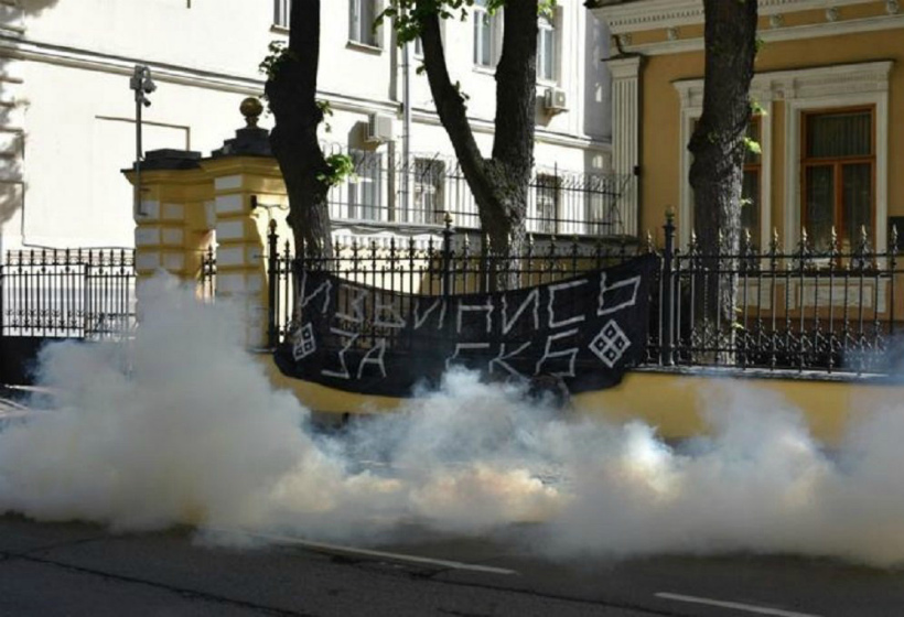 Неизвестные в масках развернули плакат «Извинись за Екб», кинули несколько дымовых шашек, после чего сели в машину и уехали. Все происходящее было снято на видео и распространено в социальных сетях. В настоящее время данным вопросом занимаются правоохранительные органы.