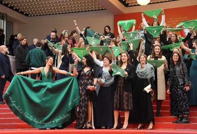 Женщины, в том числе кинематографисты и активисты, увиденные в фильме, размахивали зелеными платками и несли большой баннер во время прогулки по Каннскому ковру на премьере аргентинского режиссера Хуана Соланаса "пусть будет закон."Документальный фильм рассказывает о борьбе Аргентины за легализацию абортов.