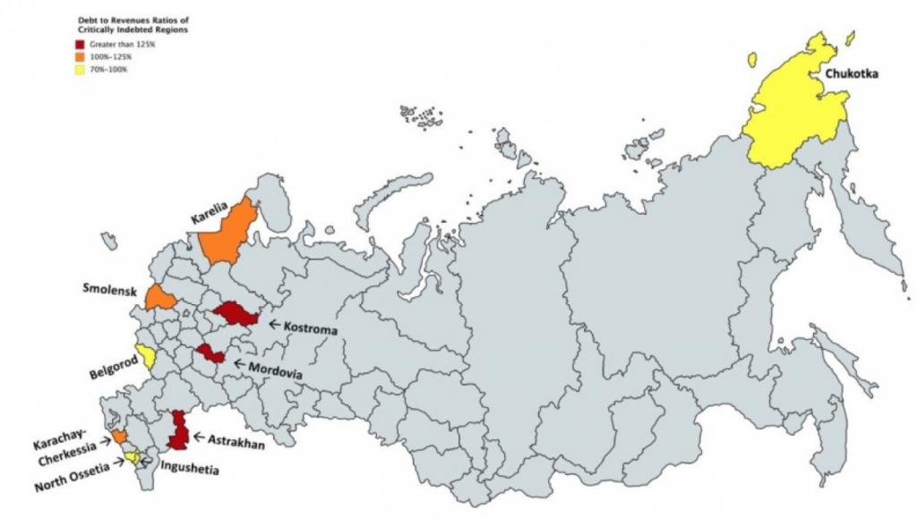 В совокупности расходы на обслуживание долга составляют сейчас лишь 1% региональных доходов, но разброс широк, и только около десятка регионов являются чистыми вкладчиками в бюджет.