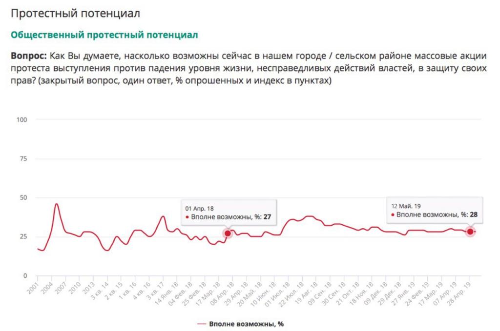 Высокий уровень общественного протестного потенциала держится на высоком уровне и не спадает уже год