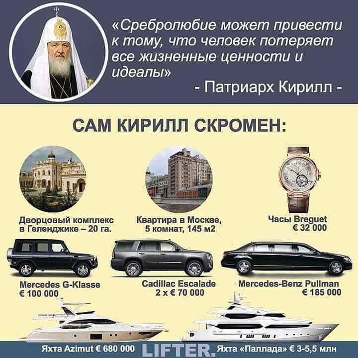 Патриарху нужно отдыхать на своих яхтах, на даче, а то на оставшую жизнь не хватить обьять не объятное.🤔