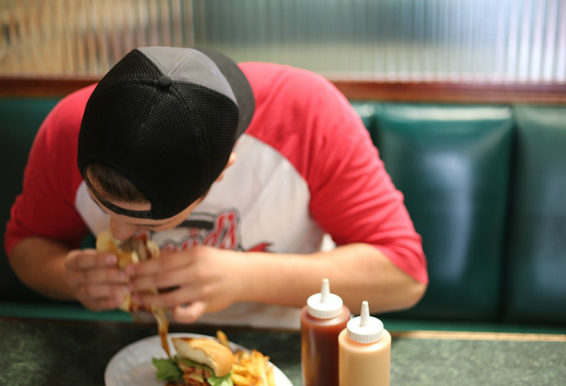 Сначала человек заедает свои проблемы, потом растягивает едой желудок, а потом уже не может остановиться. А с телевизора Малышева призывает - ешьте в день килограмм овощей и фруктов.