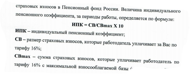 Обратившись в ПФ РФ, мы получили ответ. Пенсионщики предоставили формулу, по которой рассчитывается ИПК.